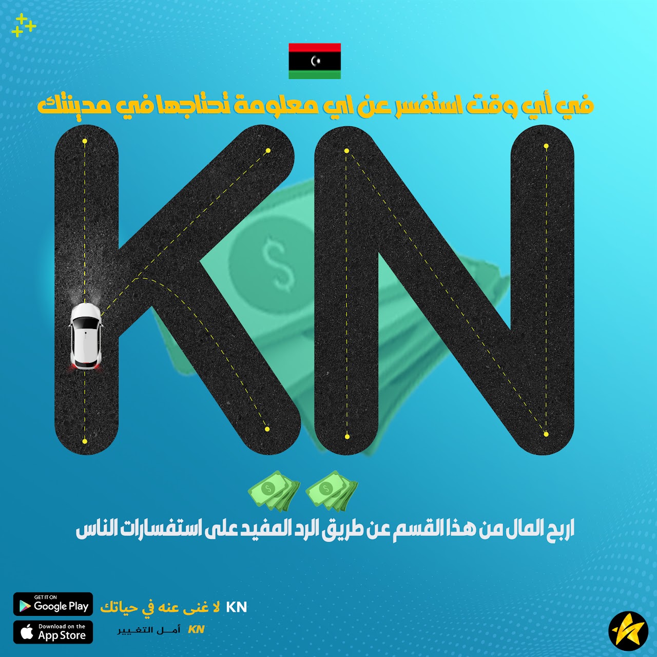 ي عصر المعلومات والتواصل الاجتماعي الرقمي، أصبح الوصول إلى المعلومات أمرًا حاسمًا في حياتنا اليومية، اذ يسعى الأفراد دائمًا للحصول على إجابات تساؤلاهم واستفساراتهم بسرعة ويسر، ومن هذا المنطلق، تقدم خدمة "اسأل" في تطبيق KN نموذجًا فريدًا للتبادل المعلوماتي المفيد والمفتوح بين الليبيين.
